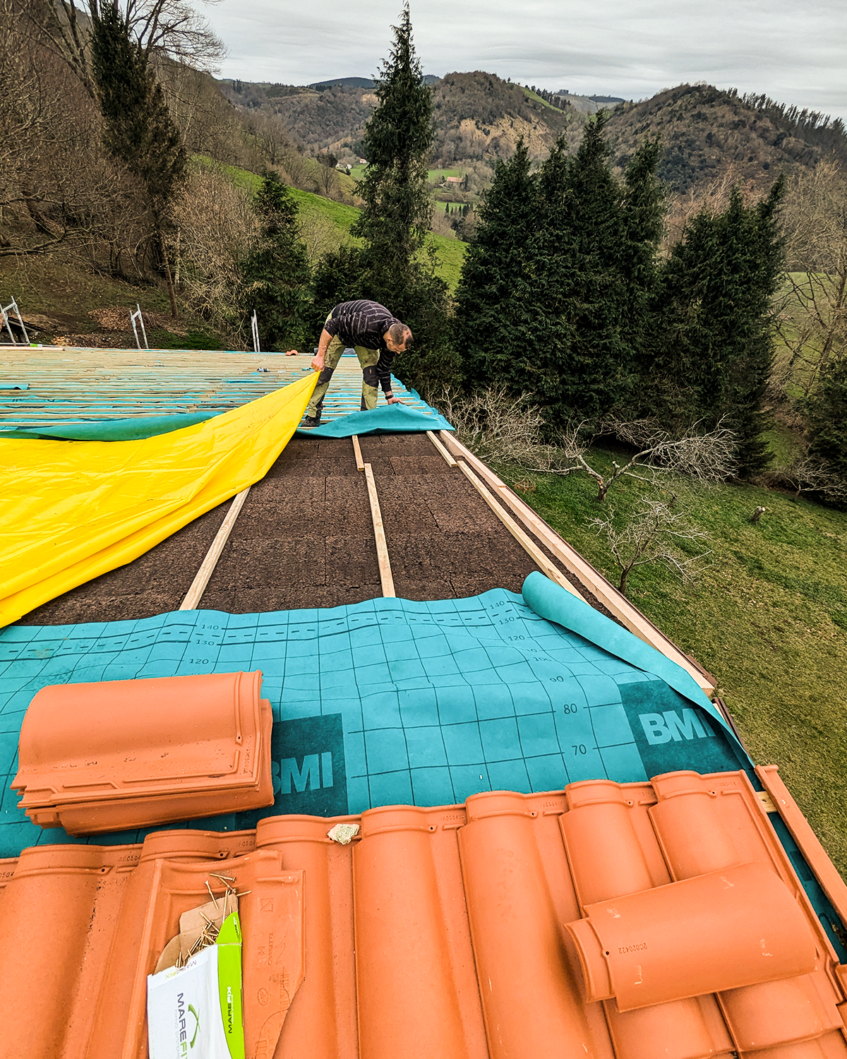 Durante la demolición del tejado se desmontaron las tejas y los antiguos paneles de poliestireno, que el cliente decidió donar como material de segunda mano. Este proyecto nos ha recordado que existe otra manera de construir, reduciendo al máximo el impacto ecológico de la edificación mediante una gestión circular de los residuos y la elección de materiales naturales.