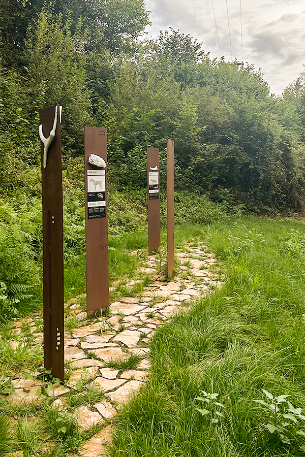 A lo largo del recorrido se narra la historia de los Neandertales y de los Homo sapiens que habitaron esta zona entre hace 200.000 y 15.000 años, describiendo la evolución del clima, la fauna y la flora de aquellas épocas. En los paneles diseñados a lo largo de la ruta se explica el trabajo de los arqueólogos y se incluyen réplicas de los restos encontrados en la zona. Estas réplicas, producidas mediante tecnologías avanzadas, permiten acercar a todos el conocimiento y la puesta en valor de nuestro pasado más próximo.