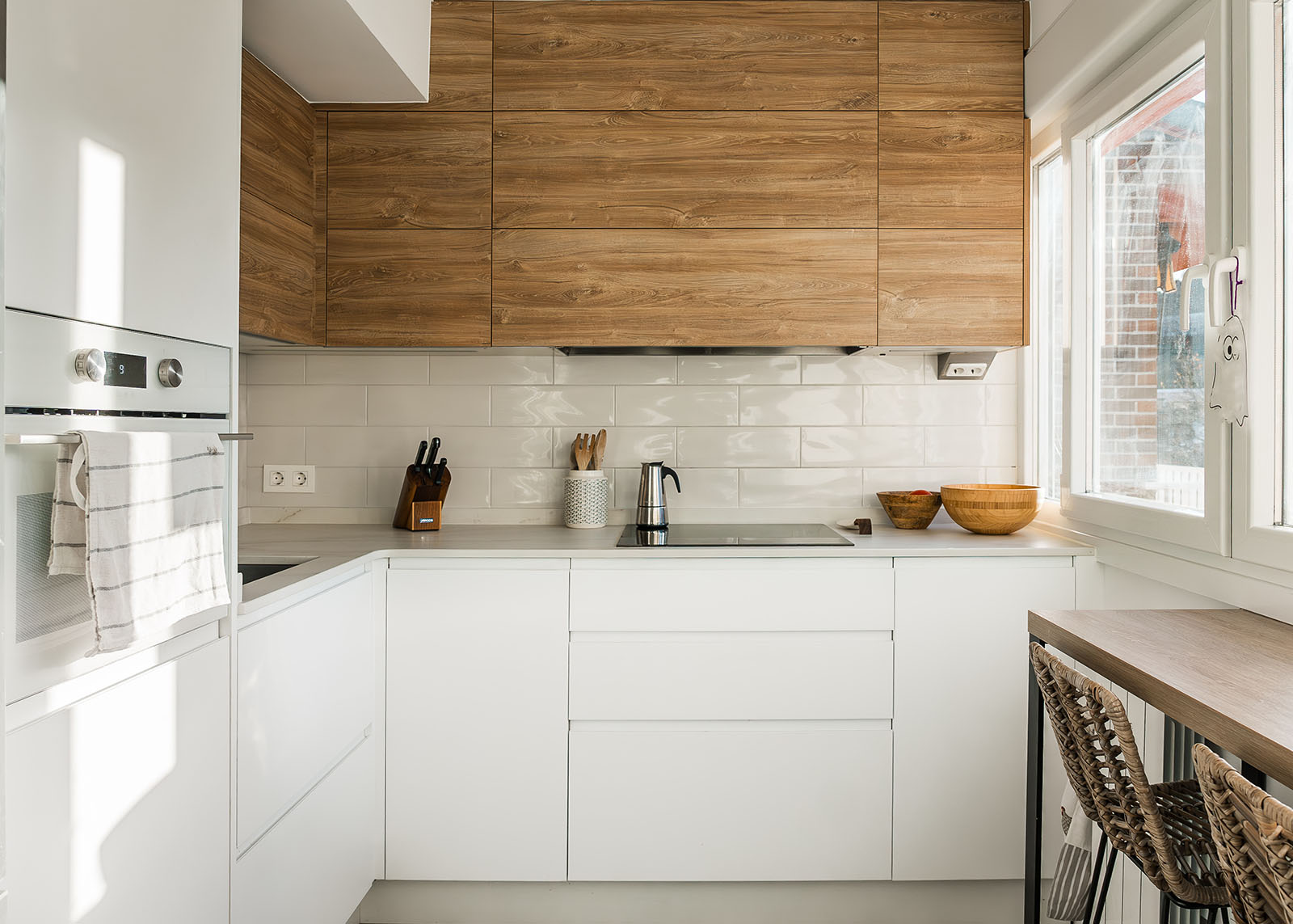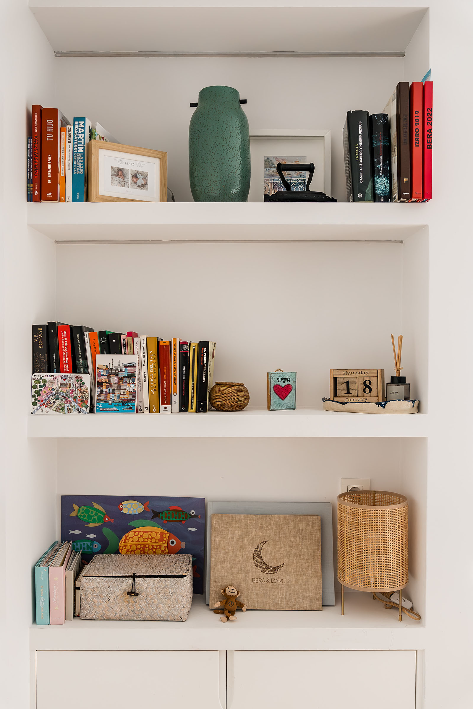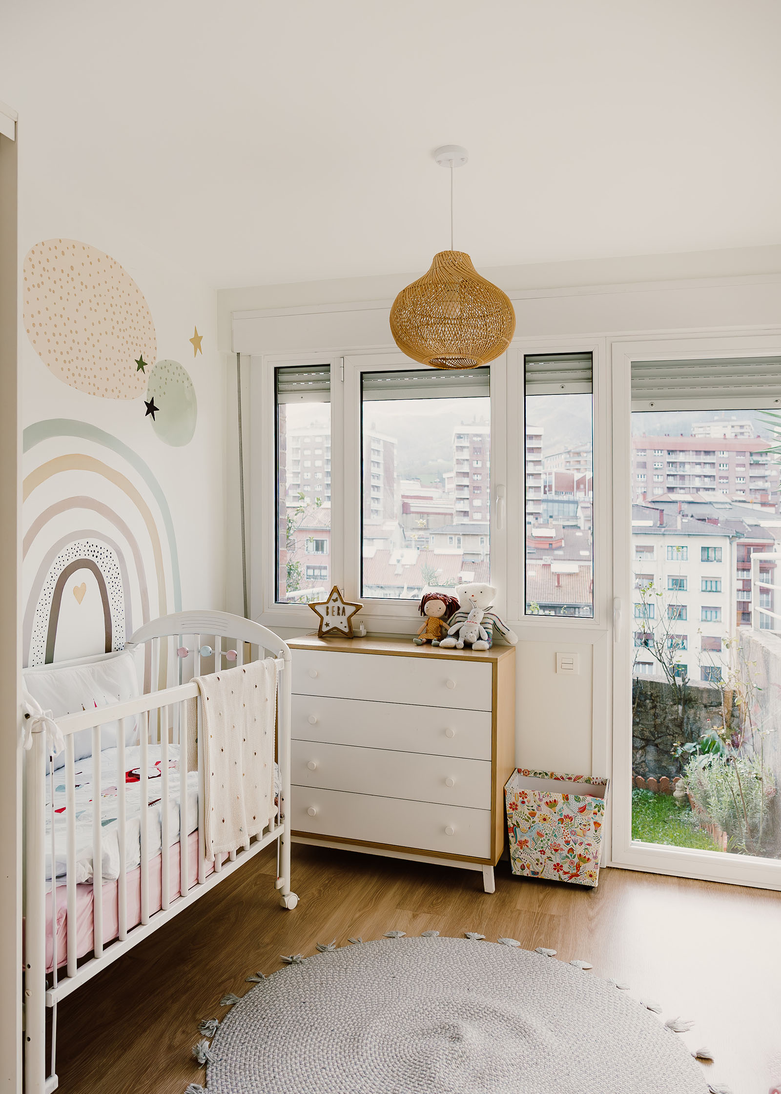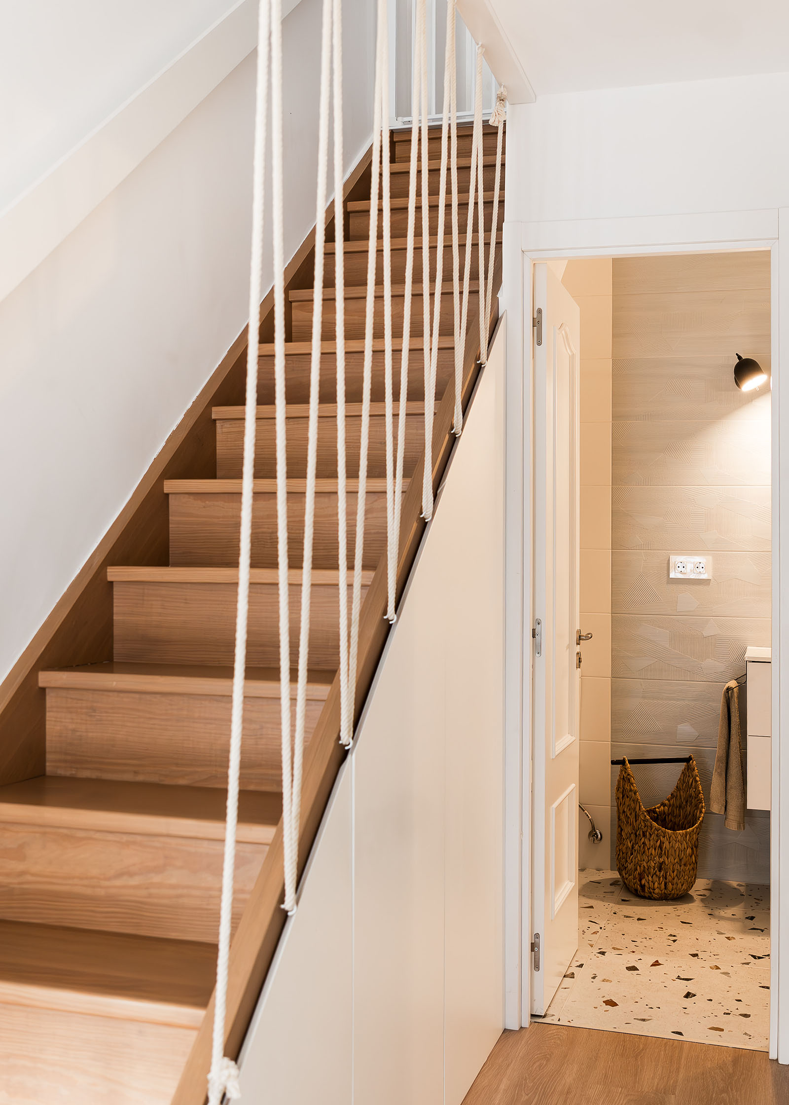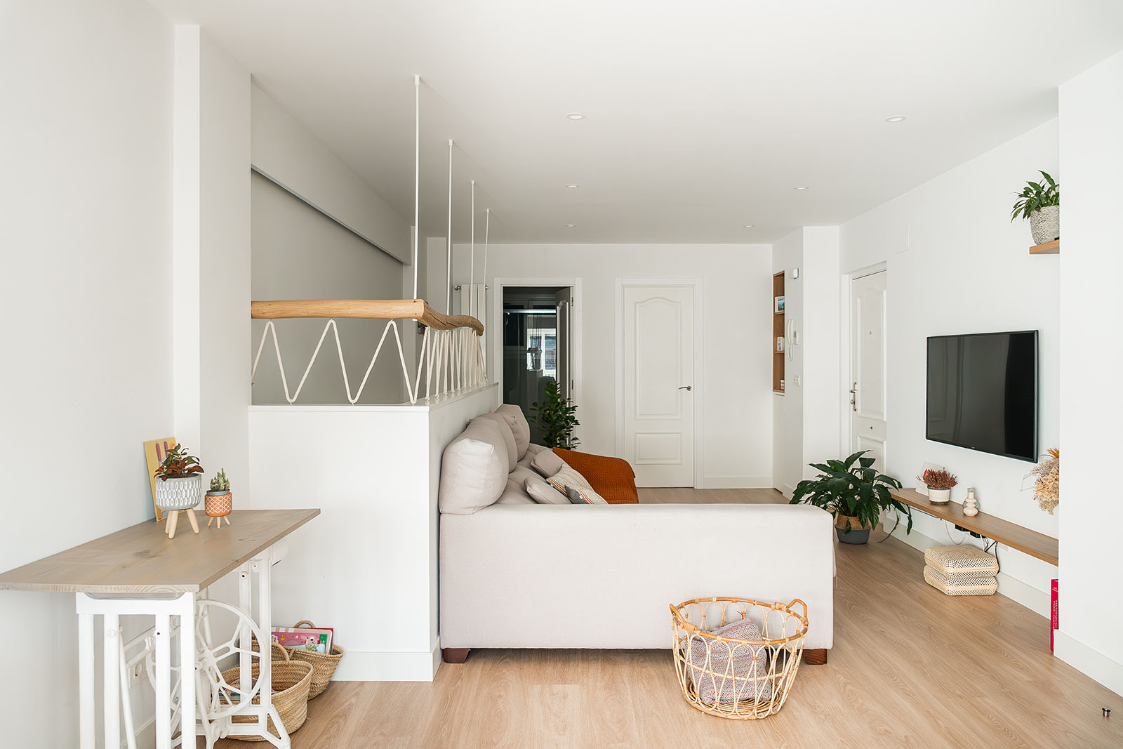 Eskilararen babes modura urritzaren egurrarekin eskuz egindako elementua diseinatu dugu, sofa gainean lasai jolastu dezaten umeek. Akabera eta instalakuntza guztiak berritu ditugu etxebizitza eroso eta efizienteagoa sortzeko.
